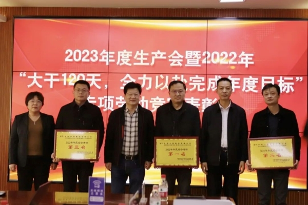 ▲召開2023年度生產(chǎn)會(huì)暨2022年“大干120天 全力以赴完成年度目標(biāo)”專項(xiàng)勞動(dòng)競(jìng)賽表彰會(huì)