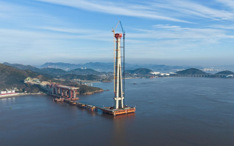 12月30日,隨著最后一方混凝土從輸送泵車中緩緩注入模板,由上海國鐵建管公司建設(shè)管理、中鐵(上海)投資集團(tuán)牽頭投資、中鐵大橋院設(shè)計(jì)、中鐵大橋局承建的甬舟鐵路西堠門公鐵兩用大橋5號(hào)主塔封頂,工期比內(nèi)控計(jì)劃提前3個(gè)月,這也是甬舟鐵路全線首座封頂?shù)臉蛄褐魉?94米高的主塔,相當(dāng)于100層樓房的高度,刷新了世界海中橋梁主塔高度的新紀(jì)錄。