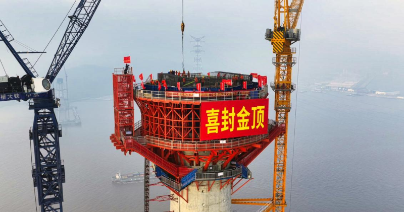 12月30日,隨著最后一方混凝土從輸送泵車中緩緩注入模板,由上海國鐵建管公司建設(shè)管理、中鐵(上海)投資集團(tuán)牽頭投資、中鐵大橋院設(shè)計(jì)、中鐵大橋局承建的甬舟鐵路西堠門公鐵兩用大橋5號主塔封頂,工期比內(nèi)控計(jì)劃提前3個月,這也是甬舟鐵路全線首座封頂?shù)臉蛄褐魉?94米高的主塔,相當(dāng)于100層樓房的高度,刷新了世界海中橋梁主塔高度的新紀(jì)錄。