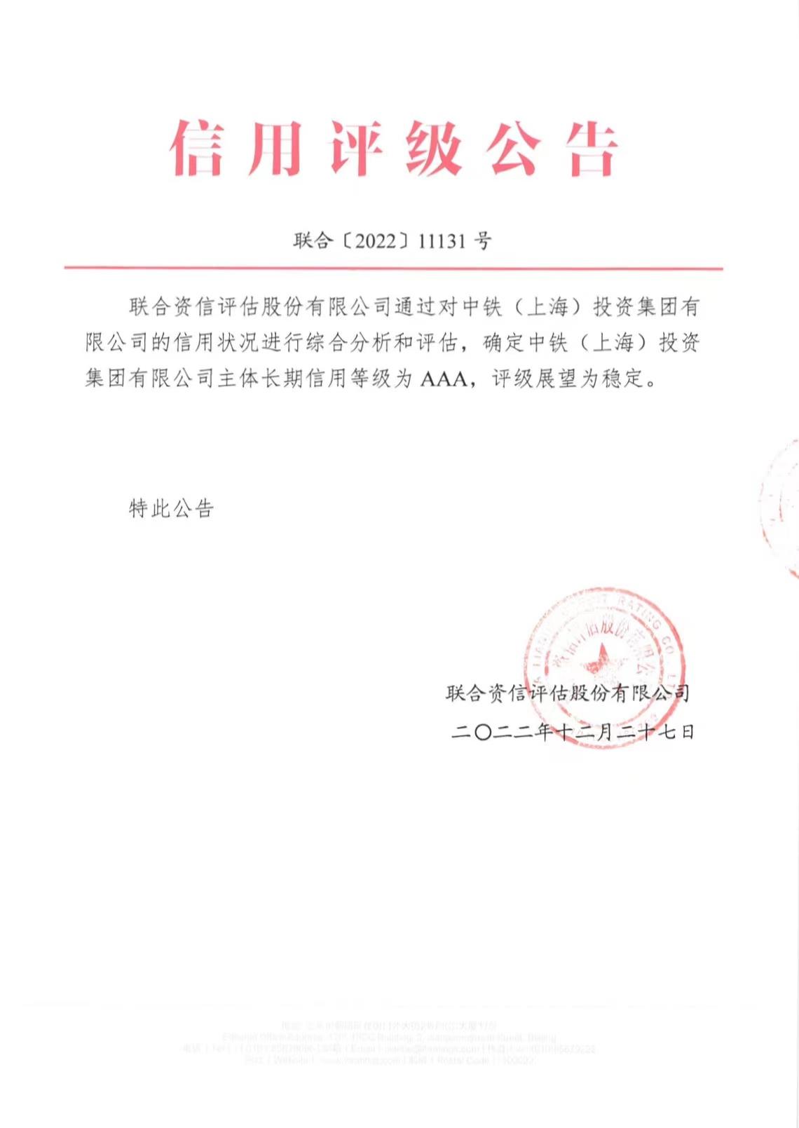 來(lái)源:中鐵(上海)投資集團(tuán)有限公司 供稿單位: 責(zé)任編輯: 發(fā)布時(shí)間:2023年01月09日 瀏覽次數(shù):